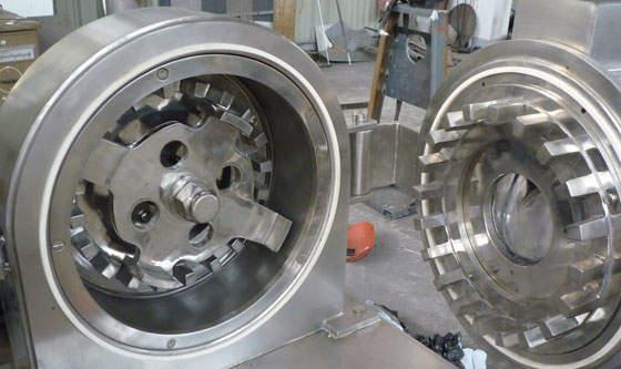 本机的工作原理是物料进入粉碎室,在高速旋转的活动齿盘与固定齿盘间受齿的冲击、剪切、磨擦及物料间的相互撞击的作用下被粉碎,经筛网筛选后即成为所需的粉料。